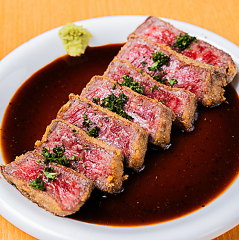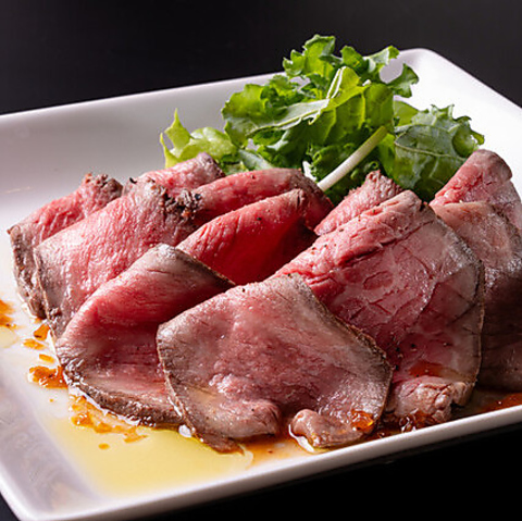 A5和牛ウチヒラを使用した極上のローストビーフは、しっとりとした柔らかさと赤身の濃厚な旨みが特徴です。特製ソースと絡めてお召し上がりください。ワインとの相性も抜群なので、ぜひお好きな一杯と合わせてお楽しみください◎