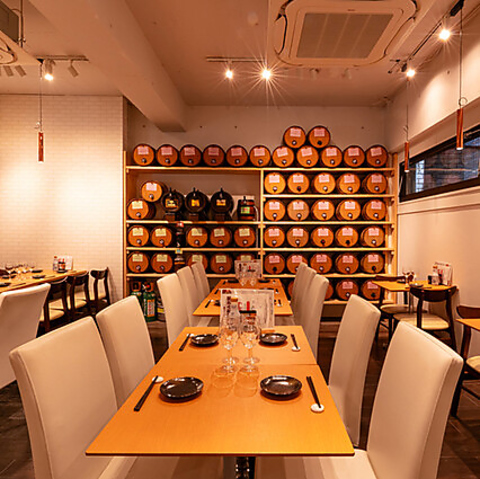 貸切は最大50名様まで対応可能!周りに気兼ねなく料理や会話を楽しみたい会社宴会やイベント、結婚式の二次会など、大人数のパーティーに最適です。店内は明るく白を基調としたお洒落な雰囲気。壁一面にズラリと樽ワインが並ぶ空間は、貸切利用でさらにプライベート感と特別感を演出してくれます◎