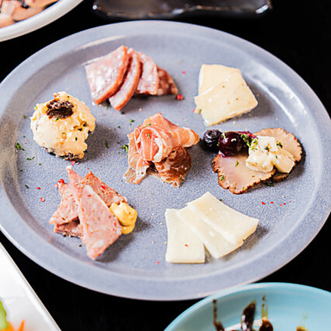 当店自慢の和牛ウチヒラローストビーフや和牛100%使用のハンバーグなど、ワインとの相性もぴったりな逸品をご用意しております。元ホテル料理人が手がける幅広いメニューは、一皿は少なめにしておりますので、いろいろな料理をシェアしてお楽しみください!