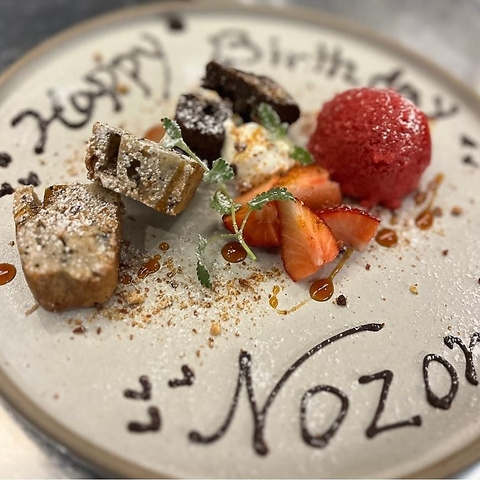 当店ではお祝いに喜んで頂ける特製デザートプレートをご用意可◎ご希望の方は前日までにお知らせ下さい。