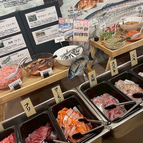海鮮ビュッフェをはじめ、定食、ハンバーグ、丼物、カレー、ラーメン、うどん、パスタなど種類豊富!