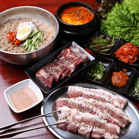 お肉とお野菜をたっぷり楽しめるサムギョプサル食べ放題コースが宴会に大人気!各種ご宴会にどうぞ。