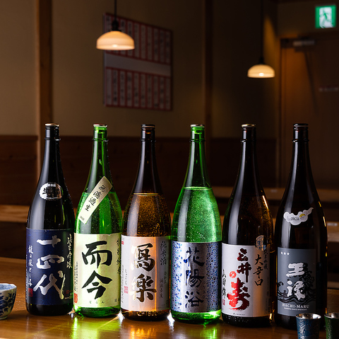 【全国の地酒をお取り寄せ】季節に合わせて旨い地酒を全国各地から取り寄せております。毎月ラインナップが変わる為、あなた好みの地酒に出会えるはず!季節の食材を使った料理と共に酔いしれて下さい。地酒飲み放題のコースもご利用しておりますので、歓送迎会など各種宴会にも是非ご利用下さいませ。