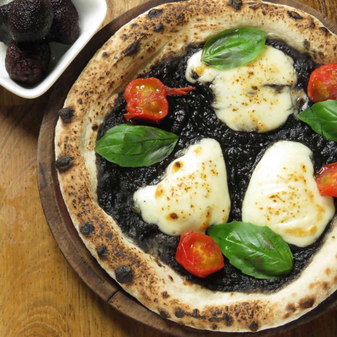 贅沢にトリュフを使用した看板商品!!炭トマトソース/モッツァレラ、バジル、セミドライトマト、トリュフ