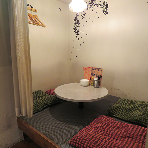 こちらは4名様迄OK半個室のお座敷!テーマは小動物園☆ 程よくクッションがあり座り心地抜群です!!デートや女子会・ママ会にも◎お子様連れのお客様も安心してお使い頂けます!!その他、2名×3、6名×1ご用意!!混雑時等、お席のご希望に添えない場合があります。予めご了承ください。