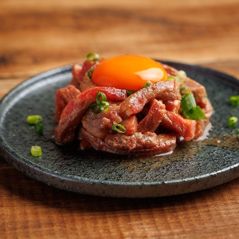大人気の月見ユッケ!新鮮なお肉と太陽の卵が絶妙にマッチ!
