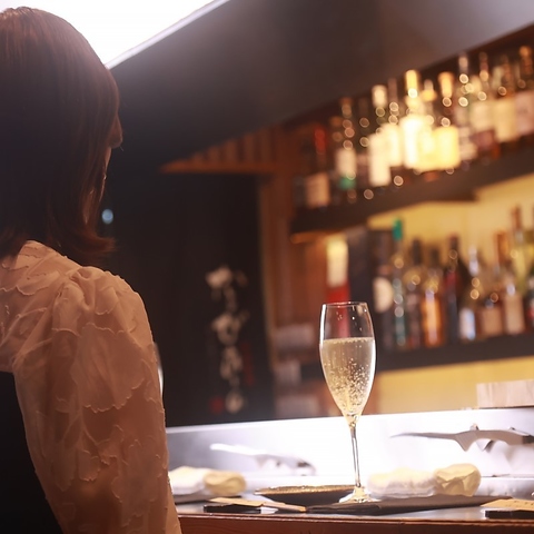 黒を基調としたシックな店内。カウンターには一人1網でご提供可能です。また、目の前にはなかなか手に入りづらいプレミアムウイスキーが数多く並んでおります。メニューには載っていない希少なジャパニーズウイスキーも数多くご用意しております。まさにカウンターが当店のVIP席となっております。