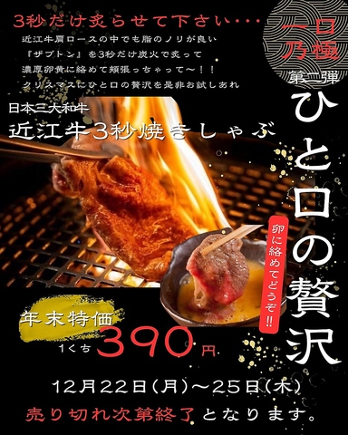 12月22日(月)~25日(木)限定☆日本三大和牛 近江牛3秒焼きしゃぶ