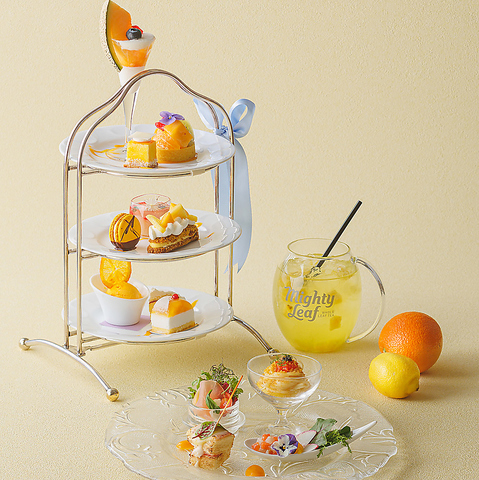 ホテルの中庭を見下ろすカフェラウンジで優雅にアフタヌーンティー。90分ドリンク飲み放題付き4400円(税込)