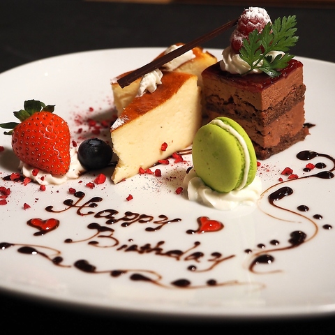 神奈川県大和市の人気洋菓子店「パティスリープティパ」とコラボしたスペシャルバースデープレート。誕生日等のサプライズにピッタリ♪お名前やメッセージなど事前にご相談ください! 4名様以上で予約可能な完全個室でサプライズをしませんか? ※写真はイメージとなります。