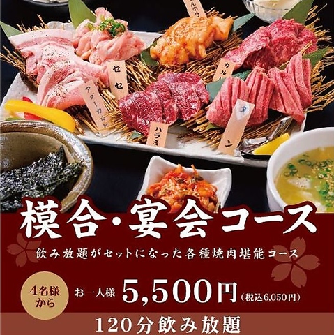 飲み放題がセットになった各種焼肉堪能コースをお楽しみください。