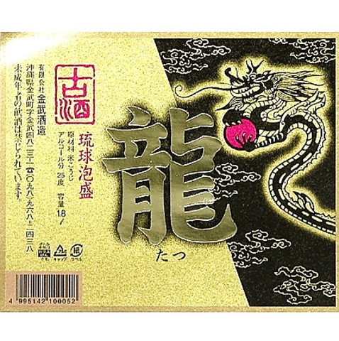 金武酒造の「きん」とラベルの色をかけて「ゴールド龍」の愛称で知られる泡盛。古酒を51%ブレンドして独自の風味を残しつつマイルドな仕上がり。飲みやすいと女性ファンが多い銘柄で、金武酒造のなかでも一番人気です。