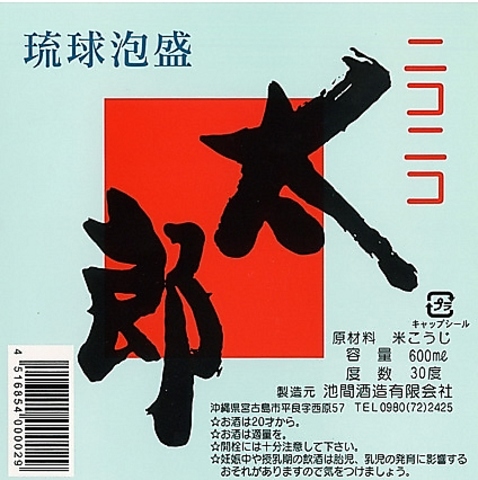 泡盛ニコニコ太郎は、沖縄県宮古島の池間酒造が製造する泡盛で、爽やかな香りと甘くソフトな喉越しが特徴です。「宮古島のナポレオン」とも呼ばれ、水割り、お湯割り、カクテルなど、様々な飲み方で楽しむことができます。