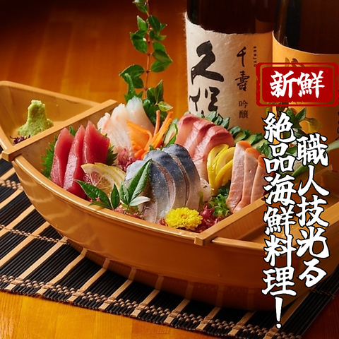 素材が良いのは当たり前、通も納得の店主目利きの選りすぐりの食材を鮮やかに盛り合わせにしてご提供しています!豪快な舟盛りや当店自慢の海の幸をふんだんに盛り込みました!