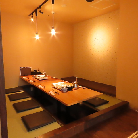 3名様~最大約10名様までご利用いただる、掘りごたつの個室をご用意いたしております!ご友人との飲み会から女子会、会社の接待や歓送迎会など、様々なシーンでご活用いただけます。落ち着いた雰囲気のお部屋ですので、くつろいでお過ごしいただけます。