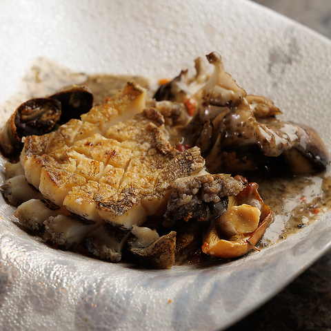 活鮑の肝を贅沢に使った特製ソースは、濃厚でクリーミーな味わい。鮑の旨味を引き立て、深いコクを感じさせます。このソースは、鮑との相性抜群で、一度味わったら忘れられない美味しさです。
