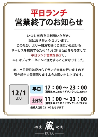 蔵 KURA ランチ 2025/12/02 更新