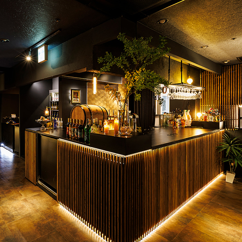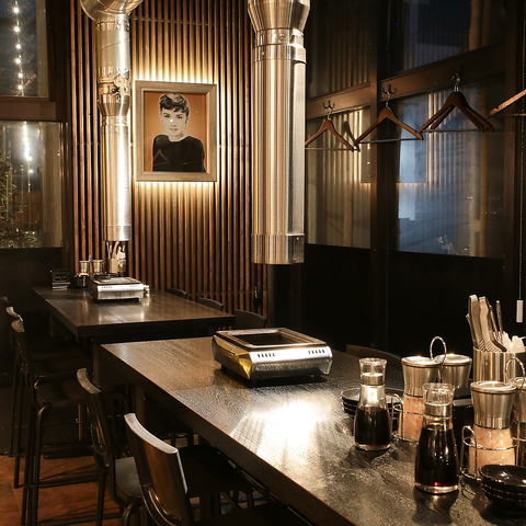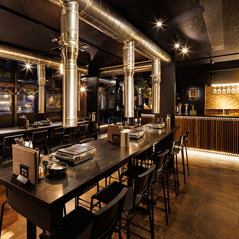 解放感もありスタイリッシュ「灯」をテーマにデザインした空間です。店内中央にはバーカウンターを設けており、洗練された落ち着いた空間で非日常を感じていただきながら、ワンランク上の焼肉をお楽しみいただけます。もちろんデートや接待などにも最適です。