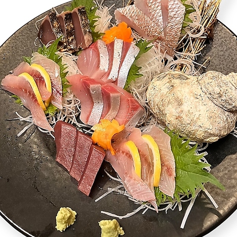 自慢のお刺身は単品550円(込)から。お刺身の盛り合わせ付き飲み放題、当日飛び込みでもOK
