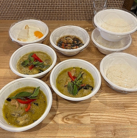 日替わりタイカレー。日によっては1種類のみとなります。ココナッツミルクたっぷりのタイカレー。グリーンカレー、レッドカレー、マッサマンカレーなど。