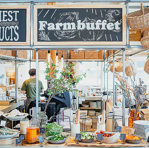 バスタ または メイン または ピザ +ファームビュッフェ Farm to table ファームサーカス提携の農園さんから毎日届く、採れたてのお野菜を使用。傷や規格外などで販売できないものも無駄なく活用しています。食べればわかる、葉っぱの活きの良さ、根菜の歯応え、新鮮だからこその苦味。ぜひお楽しみください! ※キッズメニューを除く ※ビュッフェの内容は季節や仕入れ状況により変動いたします。