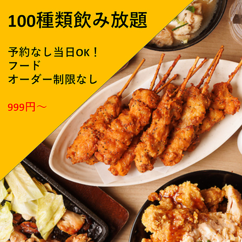 【衝撃】100種類 単品飲み放題 【2H】999円【3H】1299円【時間無制限】2000円!フードのオーダー制限なし!