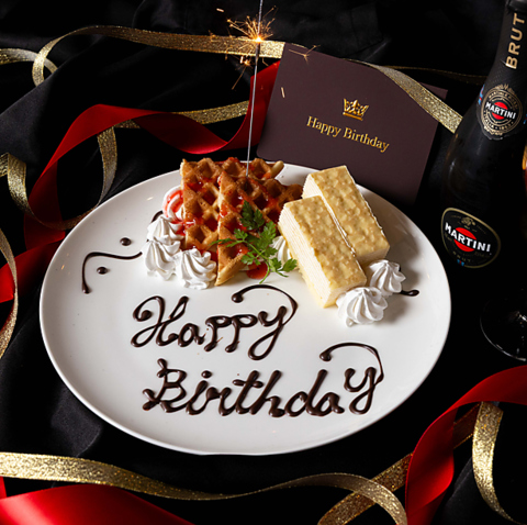 誕生日・記念日に人気のメッセージ付きデザートはコースご利用で無料でのクーポンをご用意しております。