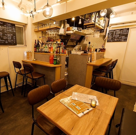 【カウンター席もご用意】テーブル席に加えてカウンター席を5席ご用意。お仕事帰りのサク飲みやお友達同士での飲み会からデートなどの特別使いまご利用いただけます。目の前でシェフが調理する姿も見れますのでスタッフとの会話もお楽しみいただけます。お一人様も大歓迎ですのでお気軽にお問い合わせください!