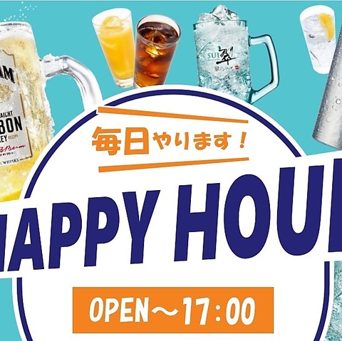 毎日やります!HAPPY HOUR(ハッピーアワー)、OPENから17:00まで♪ちょっぴり早飲みがかなりのお得です。