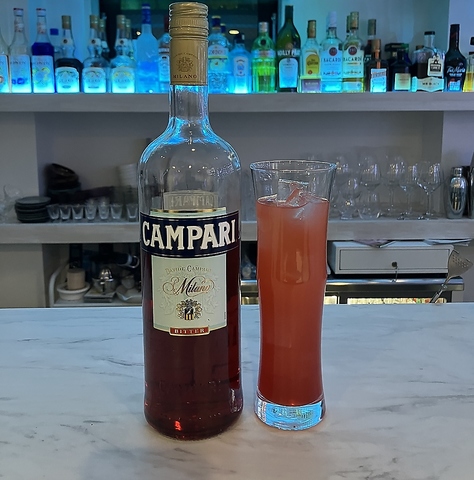 | スプモーニ | 店主が若い時大好きで飲みまくっていた。カンパリとグレープフルーツジュースを合わせたもの。 |