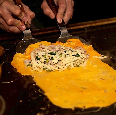 【名物豚平焼き】幅広い層に人気!スタッフが目の前で焼き上げる本日のおすすめ鉄板焼きを存分に楽しんで◎