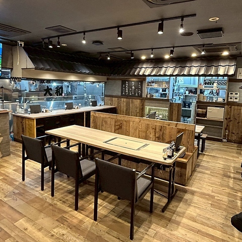 広々とした和モダン空間で宴会やグループ利用に最適!鉄板焼きの香ばしい香りとともに、楽しい時間をお過ごしください。