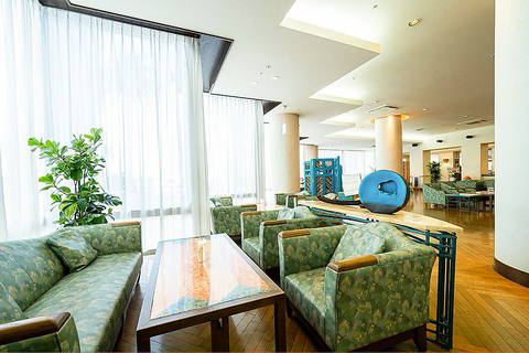 【ゆったりとしたソファー席◎】広々とした店内には、心地よいソファー席をご用意しております。リラックスしながら、友人や家族と特別な時間をお楽しみいただけます。天井も高く、開放感のある空間で、沖縄の光を感じながらくつろげます。最大66名様までのご来店が可能で、様々なシーンに対応いたします♪