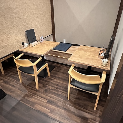 【落ち着いて食事を愉しめる半個室】和な雰囲気漂う落ち着いた空間でお洒落な造りの店内。半個室も完備しており周りを気にせず気兼ねなくお過ごし頂けます。ご家族でのご利用や、恋人・友人。会社の同僚など幅広いシーンでご利用くださいませ◎