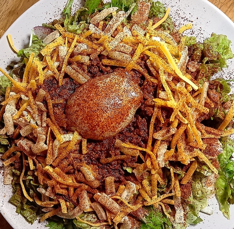 気のタコライスやカレーは、独自配合のスパイスが効いた本格派。彩り豊かな野菜とボリューム満点のお肉料理は、見た目のインパクトも抜群です。貸切パーティー、イベントでも「料理が美味しい」と評判。ランチでお腹を満たすもよし、昼飲みのアテにするもよし。シェフが心を込めて作る手作りの味をどうぞ。