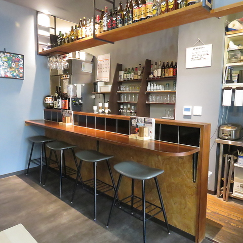お一人様も大歓迎のカウンター席。目の前で焼かれる臨場感と共に、自慢の串とハイボールを。