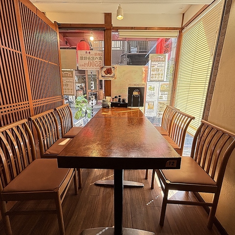 入口を入ってすぐ左にある6名様用テーブル席は、ゆったりと座れる人気のお席です。椅子の座り心地も良く、ランチはもちろん、ちょっとした会食やお集まりにもぴったり。気兼ねなく過ごせる落ち着いた空間で、本場の台湾料理を楽しみながら、くつろぎの時間をお過ごしくださいませ。
