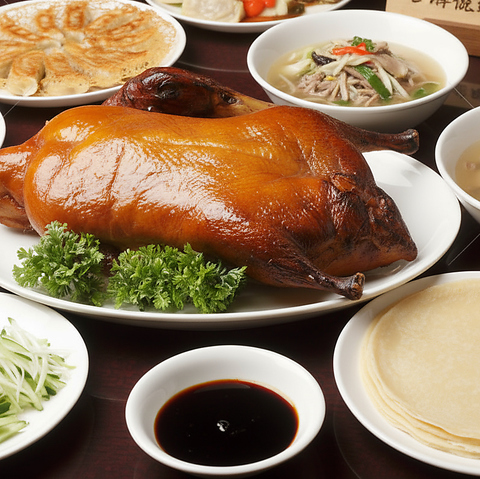 本格中華をお得に楽しめる「北京ダックコース」は、ビール・生ビール含む120分飲み放題付きでコスパ抜群。前菜の棒棒鶏から始まり、エビチリ、メインには本場の味を再現した北京ダック、看板メニューの羽根付き焼き餃子、皆んな大好き小籠包、食欲をそそる五目チャーハン、食後は手作り杏仁豆腐でさっぱりと。