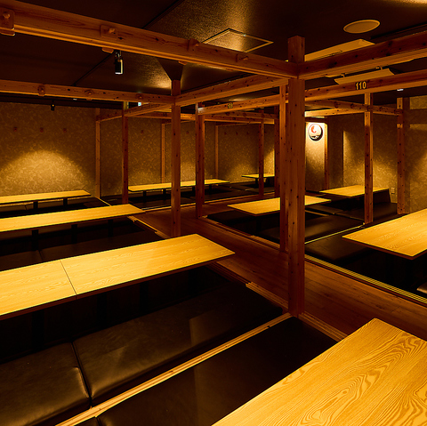 【最大90名様までOK】駅徒歩3分の隠れ家個室で大人数宴会♪4名様~最大90名様まで利用可能な掘りこだつの個室空間を完備しております♪ダウンライトがほんのり照らす個室空間は歓迎会や送別会、接待や女子会、デート、飲み会など各種宴会に最適◎お得な宴会コースは最大2.5H飲み放題付きで3500円~ご用意していますよ♪