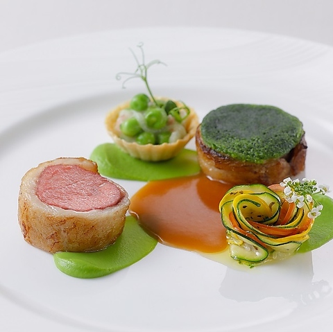 季節の選べるメニューを楽しむ優雅なコース!ランチ・ディナーでお楽しみいただけます。オードブルをはじめ、メインの肉・魚がお選びいただけるコース。どのお皿からも、季節の味覚を存分に感じていただける一皿となっております。当店のこだわりをご堪能下さい。