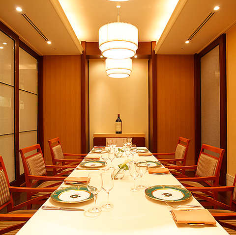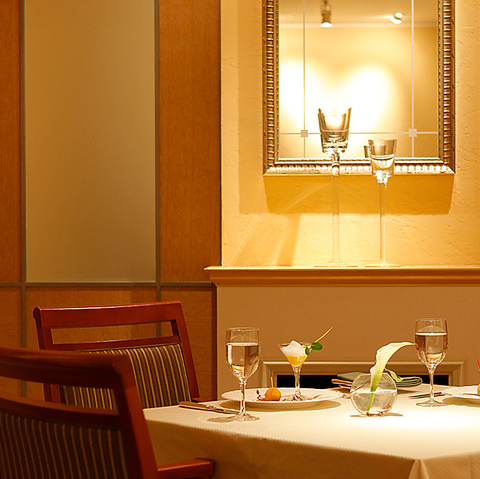 ヨーロッパの邸宅を思い浮かべる落ち着いた雰囲気の店内。個室は、プライベートな雰囲気を大切にしており、特別な時間を提供します。デートや商談などに最適なコースもございます。ランチ・ディナーともにご利用可能で、周囲を気にせずゆったりと過ごせる空間です。大事な日にぜひご利用ください。