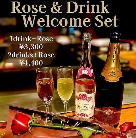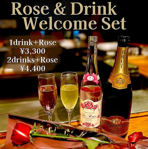12月23日・24日・25日に限定でウェルカムドリンクとしてノンアルコールシャンパンまたはシャンパンどちらか1杯とバラ1本をプレゼント致します。厳選したシャンパンをぜひお楽しみください。