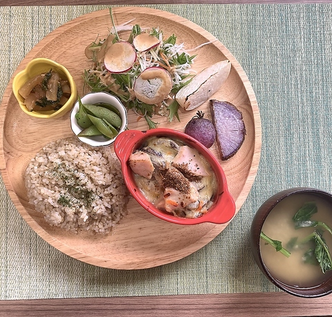 プレート料理で使用しているお野菜のほとんどは、全て自社農園栽培の安心安全のお野菜です!自家製発酵調味料で作ったお肉・お魚などのメイン料理は味も抜群で、体にも優しいメニューとなっております♪グルテンフリーのスイーツや自家製ドリンクと併せてのご利用がおすすめです!