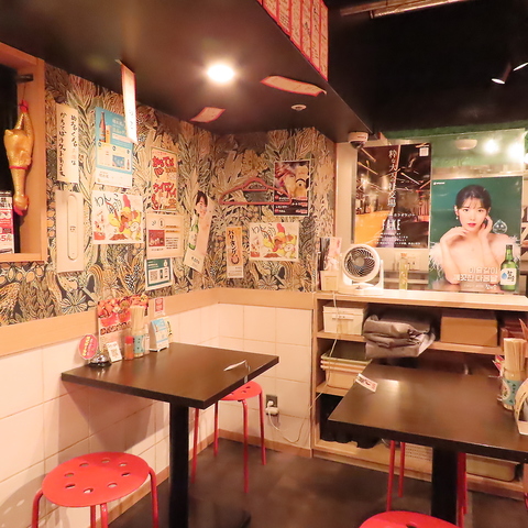 店内は、赤い椅子が並ぶテーブル席や立ち飲みカウンターがあり、カジュアルな雰囲気が魅力です。明るい照明に包まれ、友人や仲間との楽しい時間を過ごすのにぴったり!名物のわんこ手羽先「かちてば」を楽しみながら、心地よいひとときをお過ごしください。