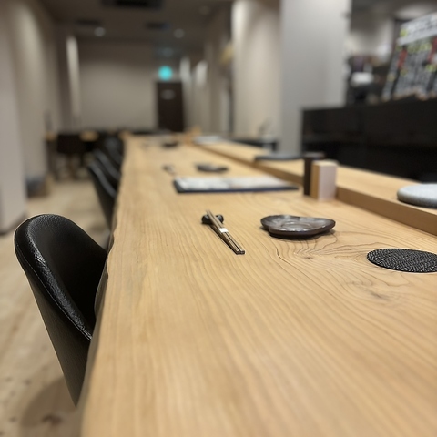 店内入り口を入ると目の前に広がるカウンター席は13席ご用意。天井も高く開放的なカウンターには木目を基調とした温かみのある空間が目に留まります。目の前ではスタッフが卓越した手さばきで焼き鳥など料理を調理いたします。焼き鳥は地鶏を使い、炭火で調理される為、美味しい香りが店内に漂い、食欲を一層と引き立てます