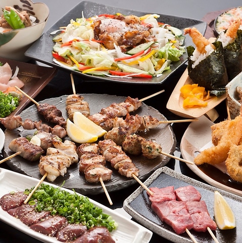 単品でもコースでも県内産朝挽き地鶏の新鮮な焼き鳥が楽しめる!!単品では1本~リーズナブルに焼き鳥が味わえて、4000円(税込)コースでは「焼き鳥盛り合せ」や「手羽唐こしょう」など当店人気メニューをお得に楽しめる♪仕入れにこだわり、一本一本備長炭で焼きあげる自慢の焼き鳥を目でも舌でもお楽しみ下さい。お酒との相性も抜群!