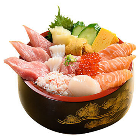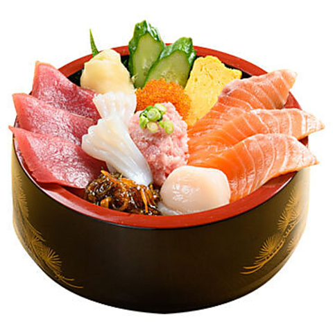 中トロ・サーモン・ほたて・カニ・ネギトロ・イカ・いくら・うにが入った、豪華海鮮丼!!