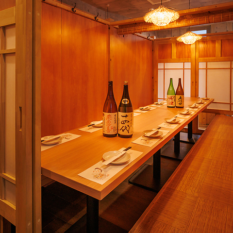 【気兼ねなく楽しめる!大人のプライベート個室】周囲を遮る扉付き個室を完備!プライベート感を大切にした空間は、接待や大切な集まり、静かに楽しみたい宴会にも最適!自慢の九州料理と地酒を囲んで、特別な時間を心ゆくまでお楽しみください!