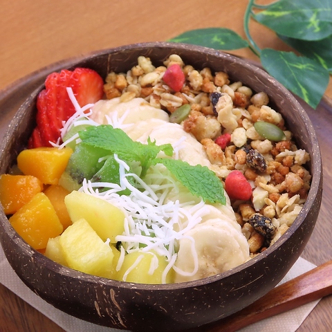当店イチオシ!高濃度グロッソアサイー使用!無糖・濃厚本格アサイーです♪アサイーボウルは、ブラジル原産のスーパーフード「アサイー」のスムージーをベースに、フルーツやグラノーラなどをトッピングしたブラジル発祥のデザートです。栄養価が高く、美容や健康に関心のある方に人気があります.。