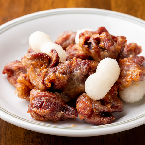 背脂がたっぷり乗ったからあげって、ジューシーでコクがあって最高ですよね。カリッとした衣に、背脂の旨味が絡んで、一口食べると幸せな気分♪是非食べていただきたい一品です!!